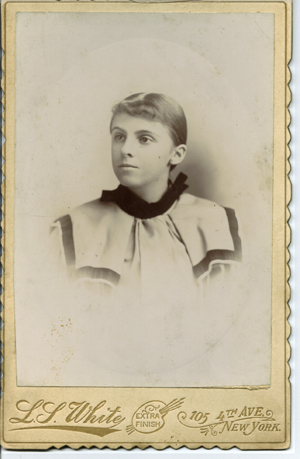 Eva Troup.   Photo in possession of  Linda Funk Shook.  Another copy mounted on the same photographer's card was in the possession of  Margaret Troupe in 2003, borrowed from the estate of Toby Harrison, a descendent of John Bruce Troup. The photo had been sent to England and has "Eva age 15 yrs" written on the reverse.
